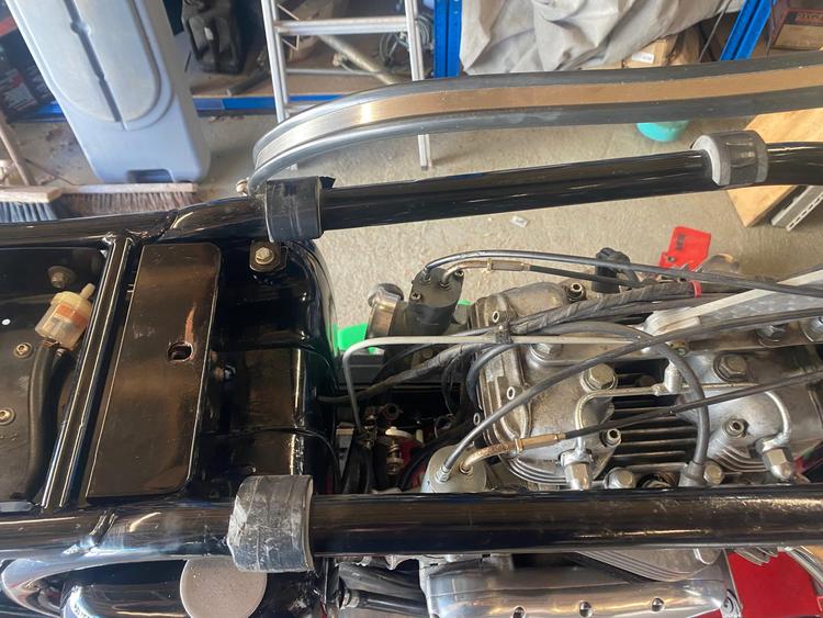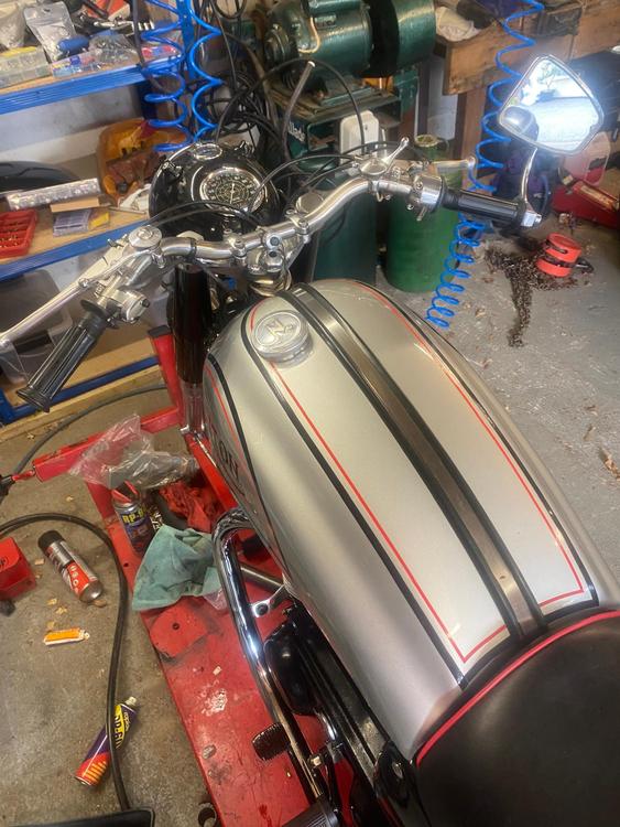This is my triton. It was built and first registered in 2009 with a historic status because the frame is a 1959. So, no tac or MOT. She has done 1500 miles since the build and has largely been on display. The carbs and petrol tap are ethanol compatible. The tank is not lined.