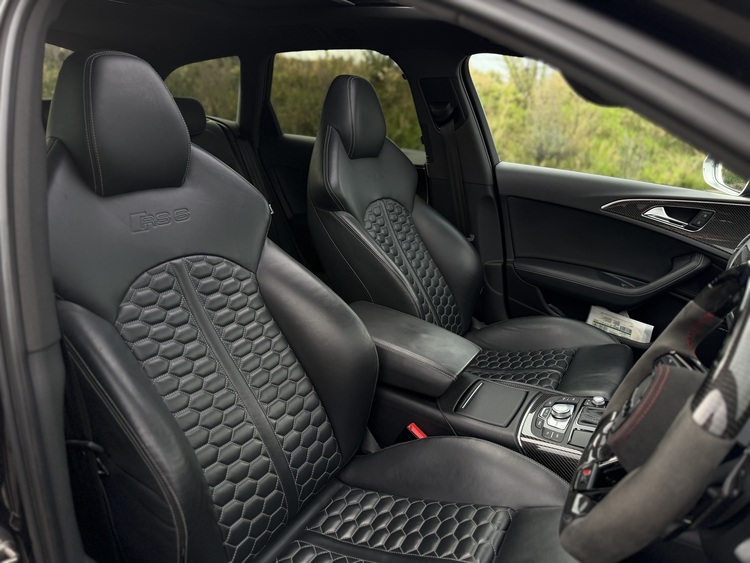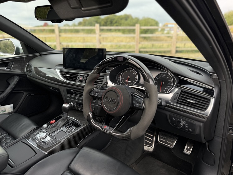 Audi RS6 V8 AVANT, finished in the striking ** Phantom Black Pearlescent ** with **Black Super Sport Seats ** FSH Dealer & Individual - Paint Correction & Ceramic Coated - Under Warranty Until end of 2026. Custom Steering upgrade & 13inch Screen! Full Miltek, Custom Wheels! GHOST IMMOB AT EXTRA COST!