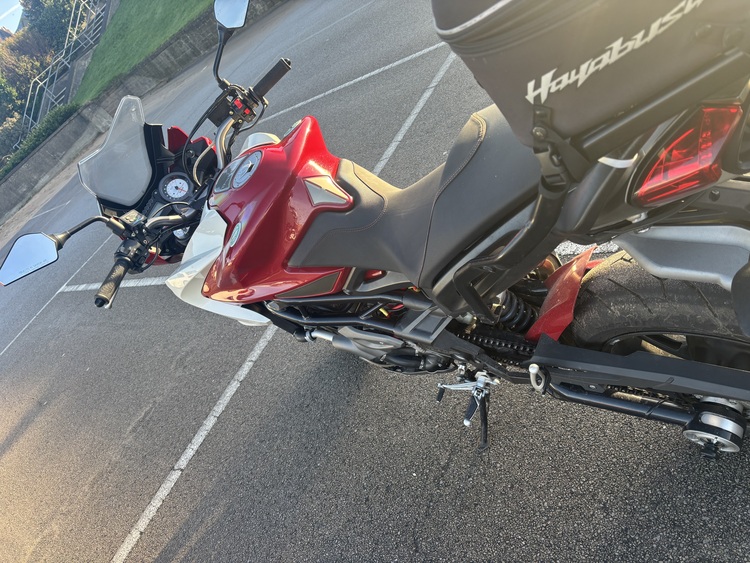 low center of gravity makes this bike feel like a cbr600 weight wise and great for tall riders with a near sit up and beg type riding position.