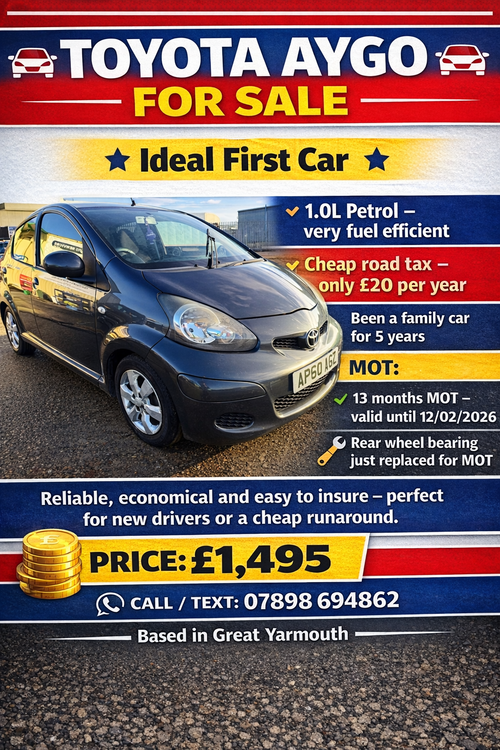 Toyota aygo years mot 1.0l petrol