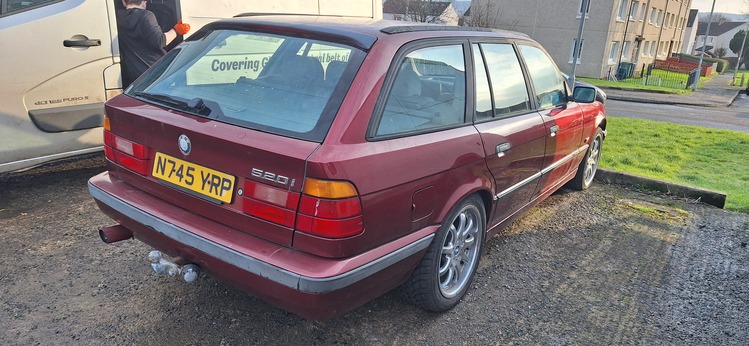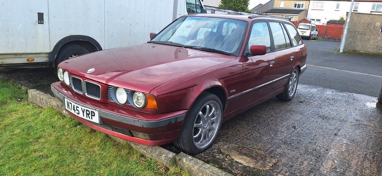 Here I have a 1996 bmw 520i tourer, its a 2.0 6 cylinder engine with manual gearbox, its been off the road since its last mot in 2021, its in really good condition for the year, it will need work to put back on the road, needs discs and pads all-round, tyres are all cracked with the car sitting for so long, the alloys are 18" brock b6 in chrome, interior is grey cloth and again in decent condition, electric windows not working either, the car does start amd drive, the engine runs pretty sweet amd doesn't over heat atall, I've taken this on as a project but unsure what I actaully want to do with it at the moment, also struggling for storage, im open to all reasonable swap or cash offers, being the tourer it is a bit more rarer than the saloons and is only going up in value, ideally I'd like to swap it for a 7 series or a nice 5 series (e60) but again im open to most swap offers just not interested in anything jap, im not in any rush to get rid of this...