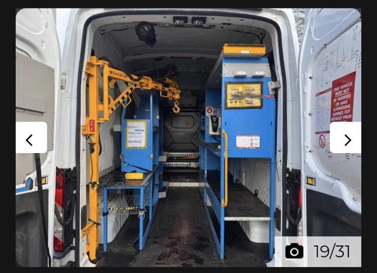 Full metal racking worth alot of money and a van mounted crane all working with controller