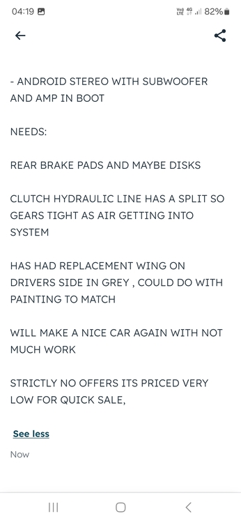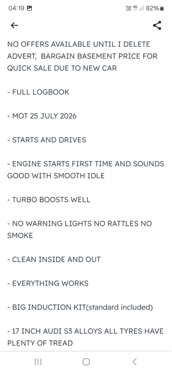 BARGAIN BASEMENT PRICE FOR QUICK SALE DUE TO NEEDING MONEY FOR MY VAN