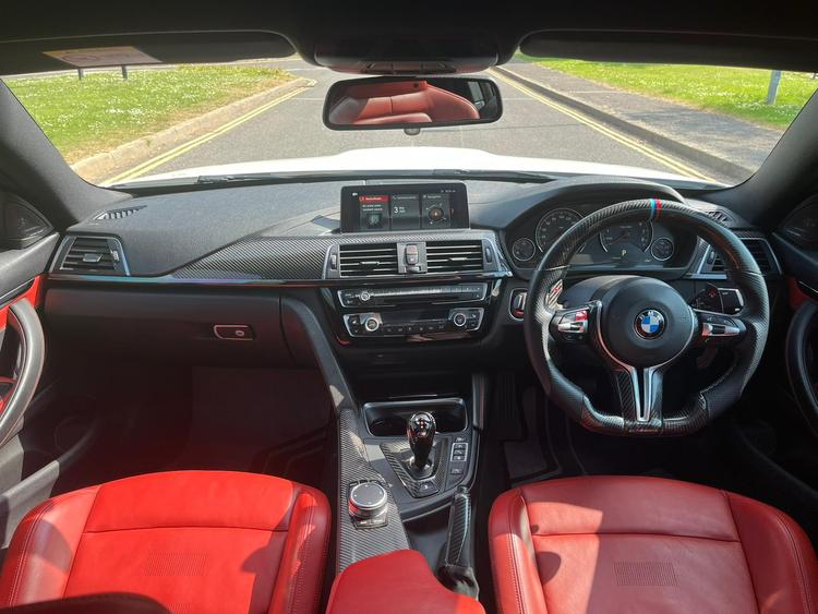 Spec: Alpine White With Red Leather Interior, Reversing Camera, Front & Rear Parking Sensors, Harman Kardon Sound System, Electric Heated Memory Seats, Full Screen Wireless Apple CarPlay / Android Auto, CF Carbon Fibre Bodykit, OLED Rear Lights, M Performance Exhaust Tips, Carbon Fibre Interior Trims, Carbon Fibre & Leather Flat Bottom Steering Wheel, M Performance Carpet Mats, Ambient Lighting, XHP Gearbox Map, BM3 Stage 2 Map, Si Performance Crank Hub Fix, Sports Cats, 55 Tuning Induction Kit Relocated Into Front Grills, H&R Lowering Springs, Ferodo DS2500 Brake Pads, Ghost Immobilizer + Lots more that I've missed!
