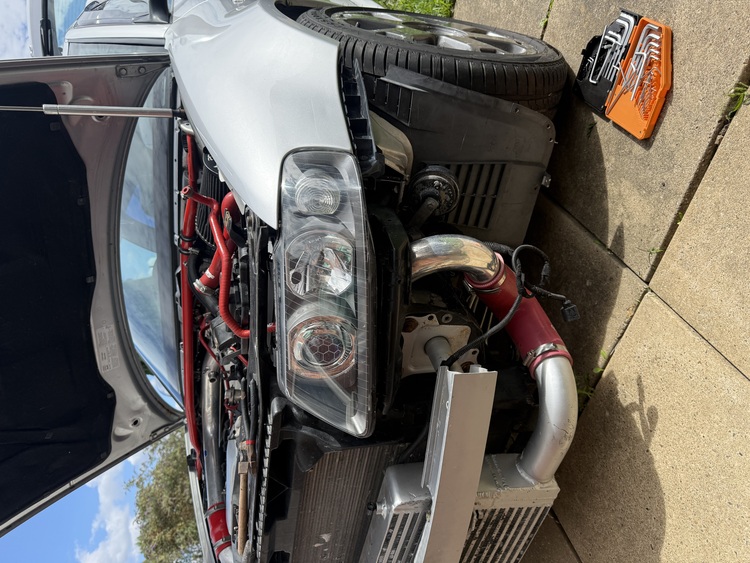 Full custom front mount intercooler with hard pipes, crash bar cut and welded properly.