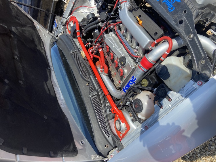 red silicone coolant hoses.