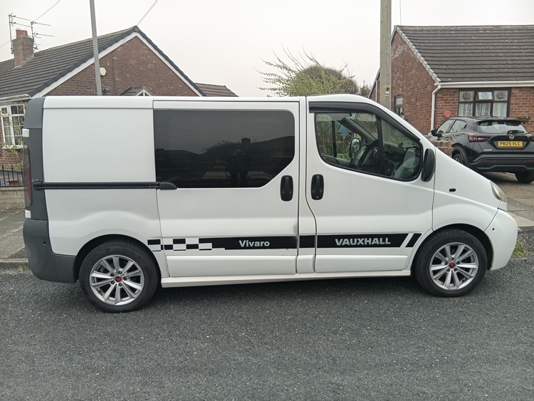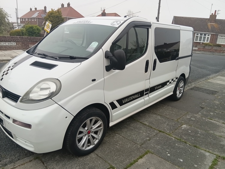 Vivaro 1.9 diesel 06 Reg. Mot till 29/04/27. 5 speed box. No lights on the dash. BMW alloy wheels with very good tyres all round. Crunches on 1st gear but still drves ok ot was like that when I got it. Good runner and very good on fuel, Part converted to camper by the old owner.New rear discs on the rear and new pads all round. Had oil change before the mot by me. Some service history. V5 in my name.