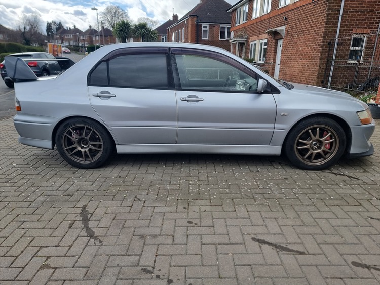 2004 Mitsubishi Evo 8 MR 320. Fresh import recently arrived in the UK. Imported by myself. Vehicle is total stock and not messed about with. Upon arrival had fresh MOT. 6 speed manual, 72k uk miles and car is also running in MPH. Just had brand new clutch fitted less than 20 miles ago, AYC & Rear diff fluids changed same time. Underneath is totally clean with no rot rust or any types of leaks. Brembo brakes, Sitting on 18" alloys with great tyres all around, HKS coilovers, and Turbo timer. Black recaro alacantra interior, Condition of the car is good inside and out. Engine clutch gearbox is working silky-smooth and it boost perfectly without any hiccups. AYC works perfectly.