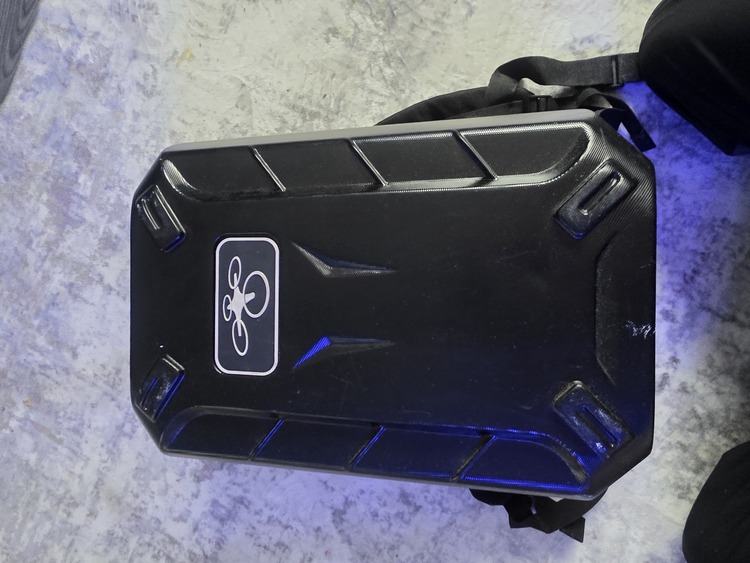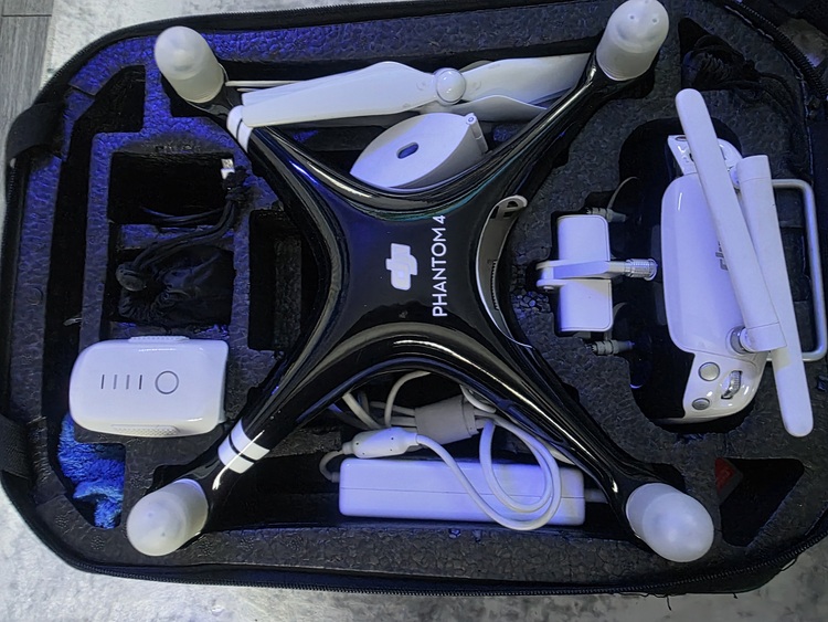 The drone itself is used but like new only used about 4 times still has some clear film on camera partial custom wrap comes with hardshell rucksack controller and harness