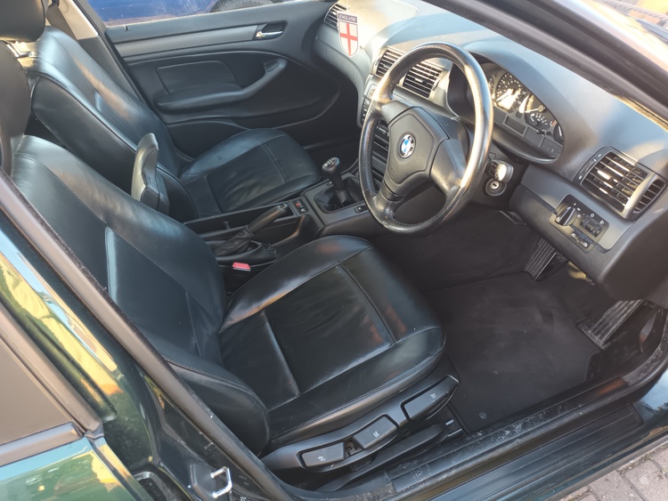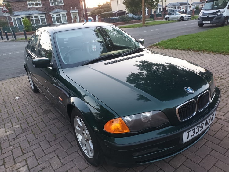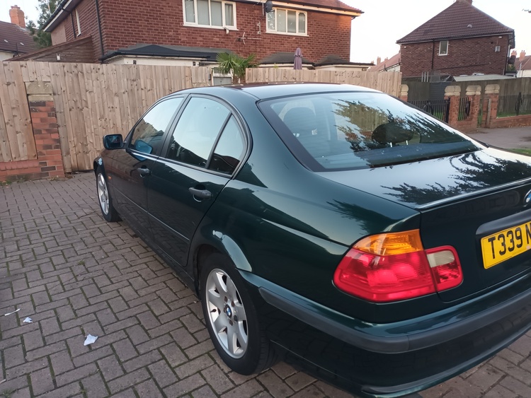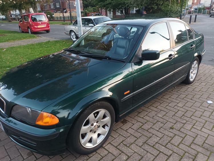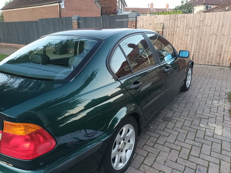 Bmw 318i 89,000 miles metallic green black leather interior like new no rips or tear good tyres and wheels good brakes clutch 2 folders book and bills and service history bodywork is in very good condition drives very nice been in family for 2 years mot t feb 2026 had new windscreen and battery good on petrol around 35 mpg more on a run cheap insurance as it 26 years old so can insurance as a classic car
