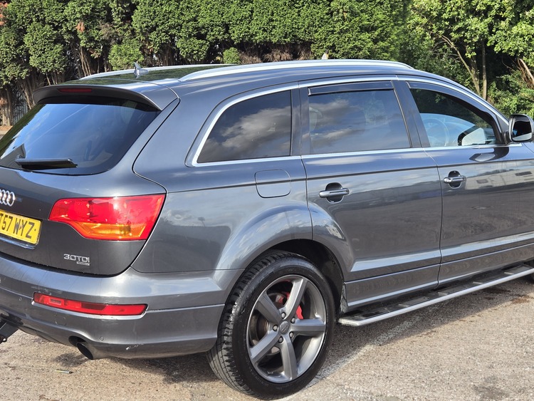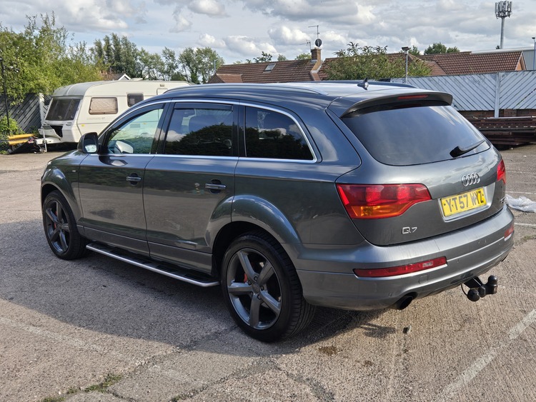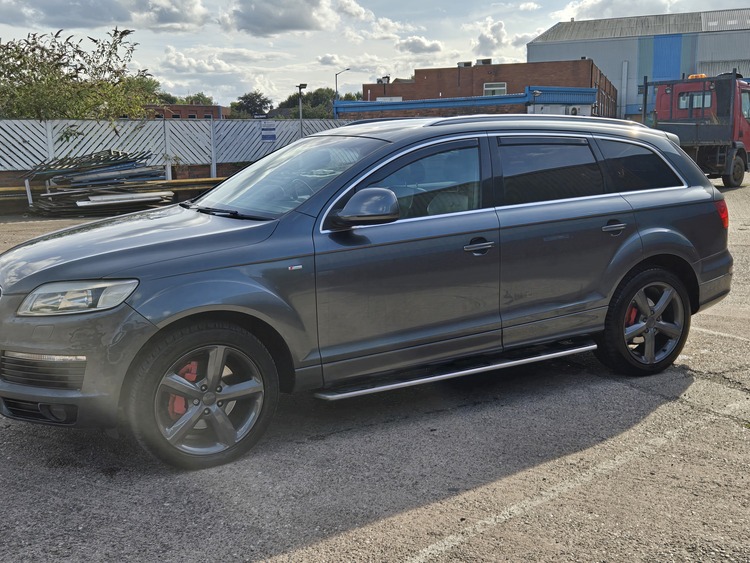 Here's my lovely q7 auto diesel long mot just had loads spent on it new fuel pump glow plug injectors service brakes upgraded lights remapped limo tint wind deflectors red calipers just done looks the part gearbox smooth pulls great tow bar loads of paperwork first to see will want this