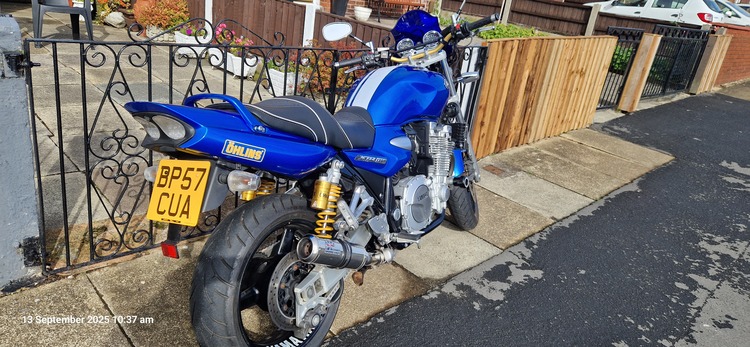 very clean bike 27000 miles with service history all handbooks.two keys. as a lovely custom seat fitted. also nice race can that sounds awesome.