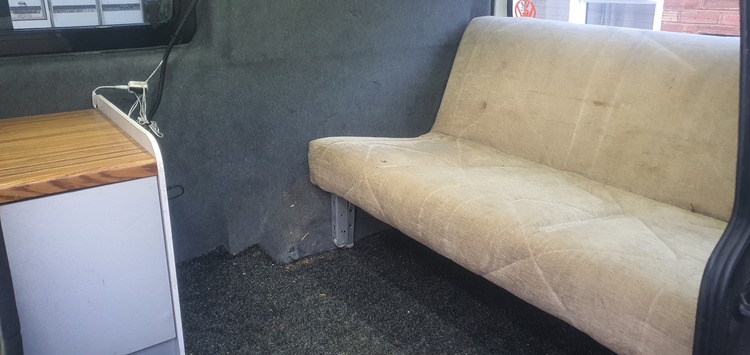 in the back has been carpeted and insulated with a full width very comfy rock and roll bed with a small unit fitted with a control panel fitted running from the leisure battery its has 12v lights fitted and 12v sockets and 12v usbs fitted also has a split charge relay system fitted.