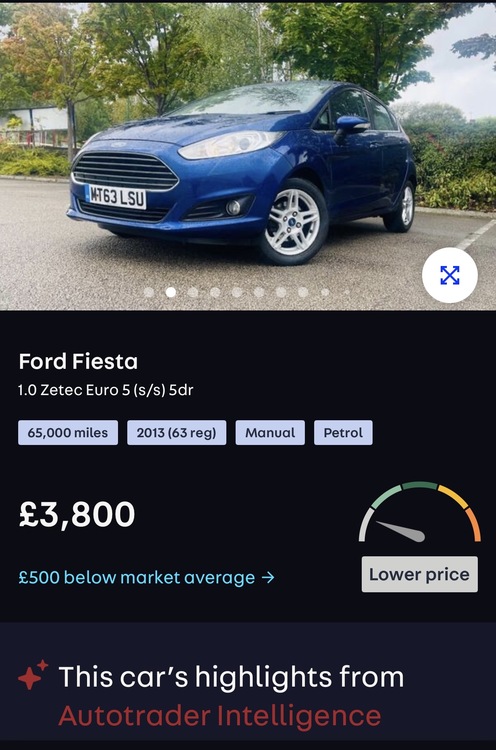 Ford Fiesta Zetec 2013 1.0L 80bhp non turbo petrol manual, 5 door. Long mot, 65 mpg, 3 owners, low millage only 65k miles, full service history, last service 3 months ago, still 9 months Waranty left from Warranty-wise, HPI clear.