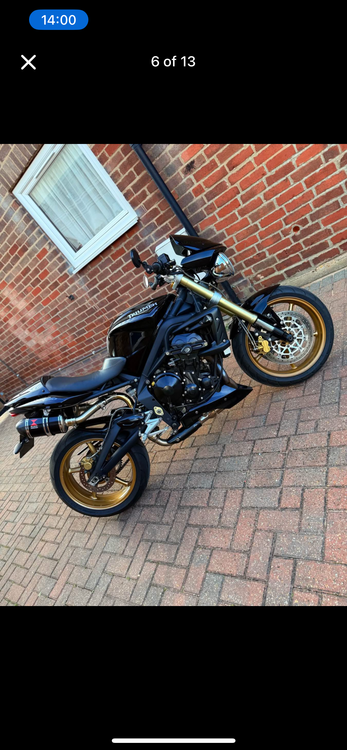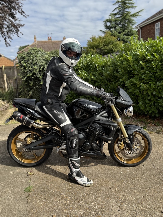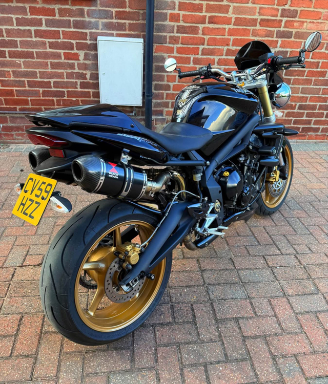 Here’s my triumph street triple. Absolutely stunning machine, got all the extra trick bits needed to make it the perfect pick. Extended screen, crash bobbins, twin stubby cans, rear seat cowl, rad guard, stubby levers, bar end mirrors. I’ve remapped the bike to suit the pipes and it really does shift! I was very surprised how well these things go and handle jumping from a 1000cc twin to this. Needs nothing at all. Jump on and ride the thing.