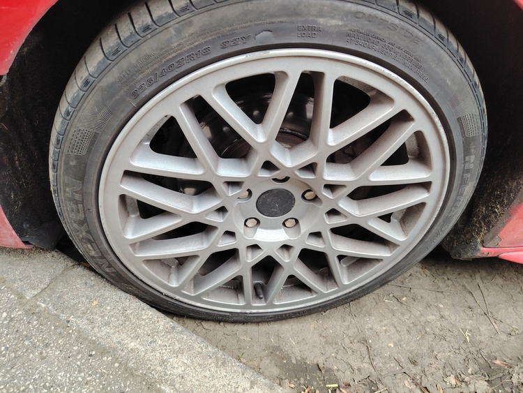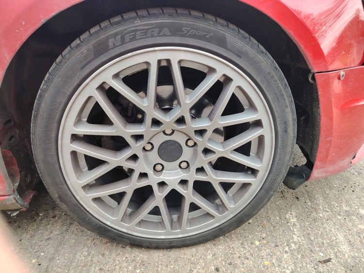 Set of alloy wheels, 5x112 PCD, available for swap. Tires have good tread remaining. Minor scuffs on the edge of a couple of wheels, but overall in very good condition.