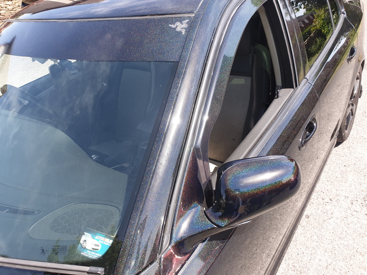 £4000 custom respray (real head turner) true black with rainbow pearl the sun/bright lights makes the car sparkle with rainbow, all done by chesterfield auto colours..