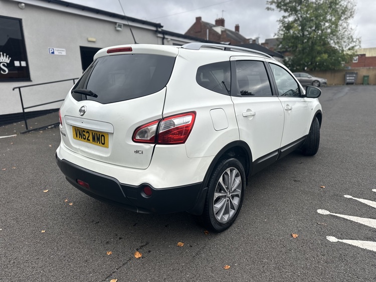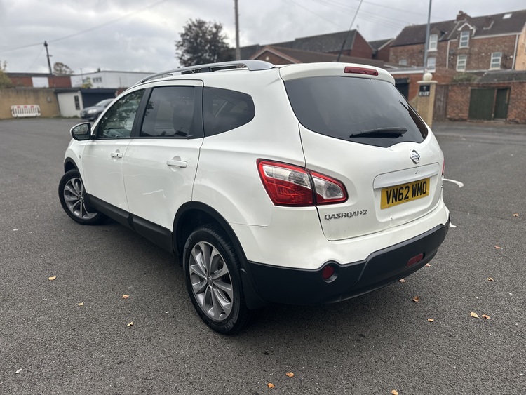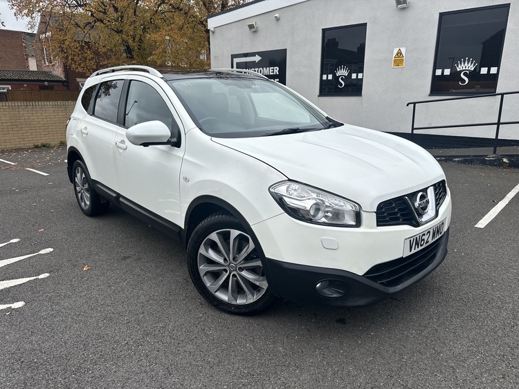 2013-62 Nissan Qashque+2 1.6dci tekna 5DR in white comes with only 80000 miles full 12mths test remote central locking and alarm cd player Bluetooth electric windows full pan roof full leather interior heated seats alloy wheels with all good tyres very very clean inside and out drives outstandingly well not to be missed