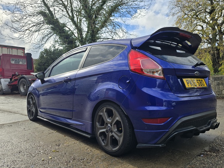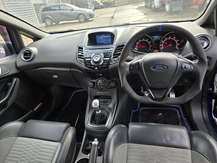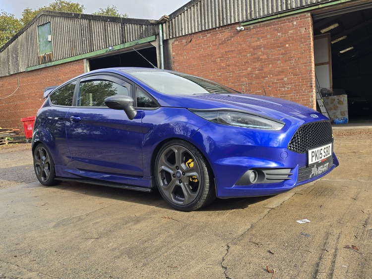 2015 fiesta st180 hpi clear 101k on clock running stage 4 collins performance iflash comes with vehicle with 2 maps loaded stage 2 and stage 4 track mode, tubular manifold x47r turbo with x49 cartridge turbosmart bov pro alloy front mount itg induction kit cross over pipe full miltek exhaust with miltek sports downpipe fully polibushed rear axel and torque mount vudu quick shift lowered on 35mm lowering springs maxton design kit and custom steering wheel