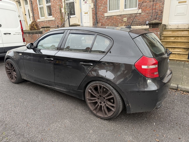 Up for sale is a Bmw 118d M sport 1 series has black half leather trim full electric park heated front seat CD player also come with a double din CDDVD satnav  head unit pads all around about six months ago just done back shocks could do with rear spring, but they’re in the boot brand in the box got about 6 months MOT left on it 172k on Clock I’ve owned the car over a year now never let me down good little work horse 19 inch alloy wheels £35 a year tax it has a few bits of paperwork in the glove box full logbook, in my name