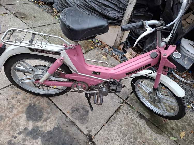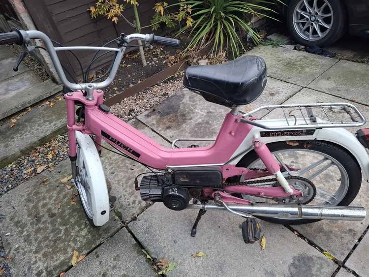 Pretty in pink. Puch Maxi. 1979, running bike. V5 in my name. Brand new chain guards included, still in box