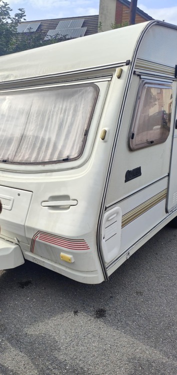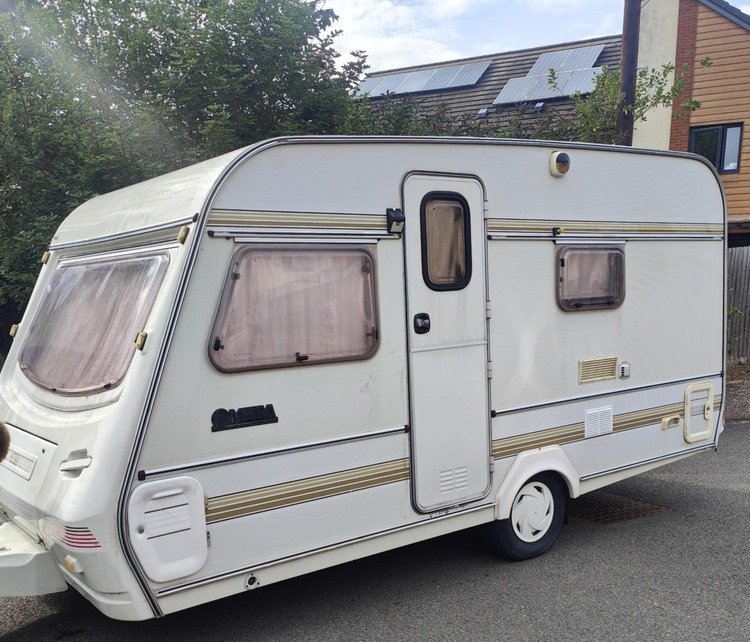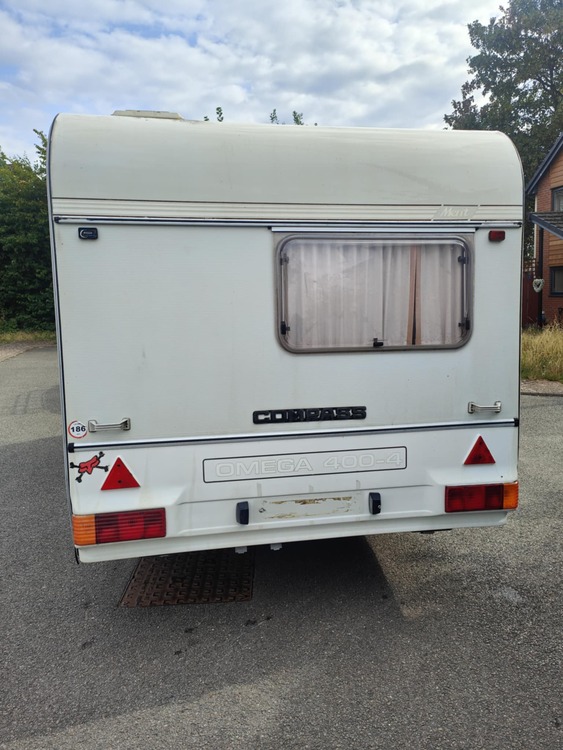 Compass omega 400-4 for swops it's dry and no damp we have lived in ir fir 3 months as was waiting for our flat has an awing that's dry and been water resistant treatment open to all Offers everything works as it should