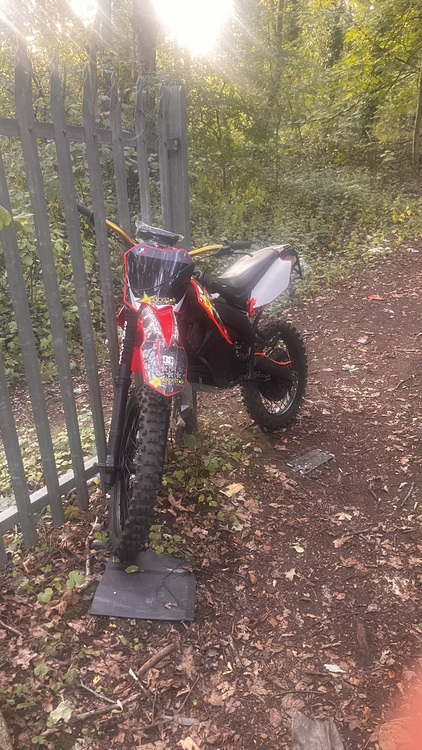 Road legal electric crosser ‘ this bike is a beast reaches 90mph the on a full charge you get 190km approx 118 miles is fully Bluetooth so you can adjust the power range and torque it’s based on 2005 aprilla frame with ktm 250 full front end ‘ 21inch front wheel brembo front brake 18inch rear qs273 rear motor 30kw with a 680amp controller 72v battery with 200amp bms everything works as it should comes with charger full log book in my name and reg plate this bike can be rode fully legit on provisional without cbt licence ‘
