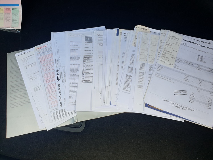 Lots of paper work for the car.