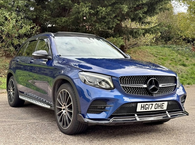 Mercedes Glc 350d Amg Line Premium Plus, 2017 reg, metallic blue, 75,000 miles, mot, service history, new engine fitted, automatic gearbox, heated memory leather seats, wide screen sat nav and media, reverse camera, virtual cockpit, parking sensors, panoramic sunroof, upgraded ambient lighting, burmister sound system, self closure electric boot, front splitter, rear boot spoiler, air conditioning, abs, pas, alarm, remote central locking, dual climate control, electric windows and mirrors, cruise control, heated screens, auto lights, privacy windows, wind deflectors, cd player, Bluetooth, telephone, multi functional steering wheel, alloy wheels and many more extras. v car. cat s.