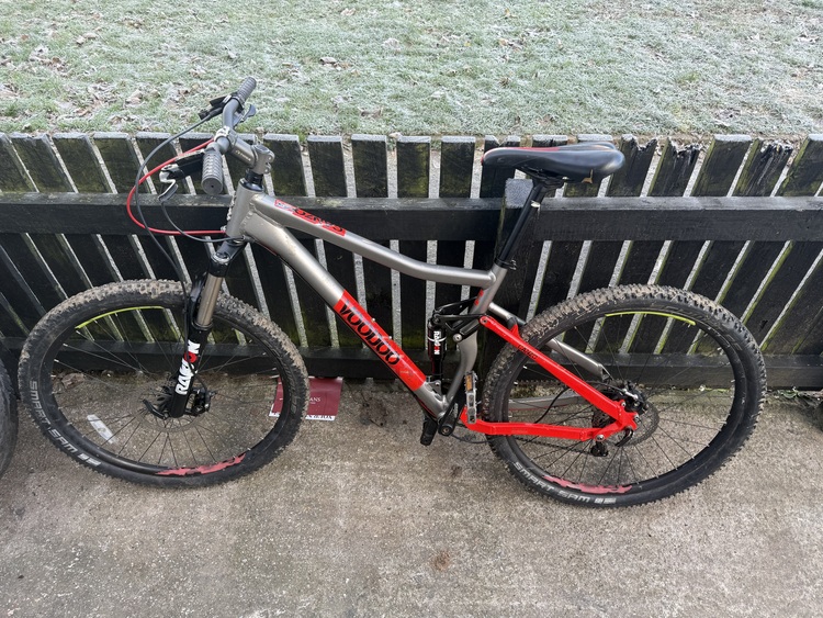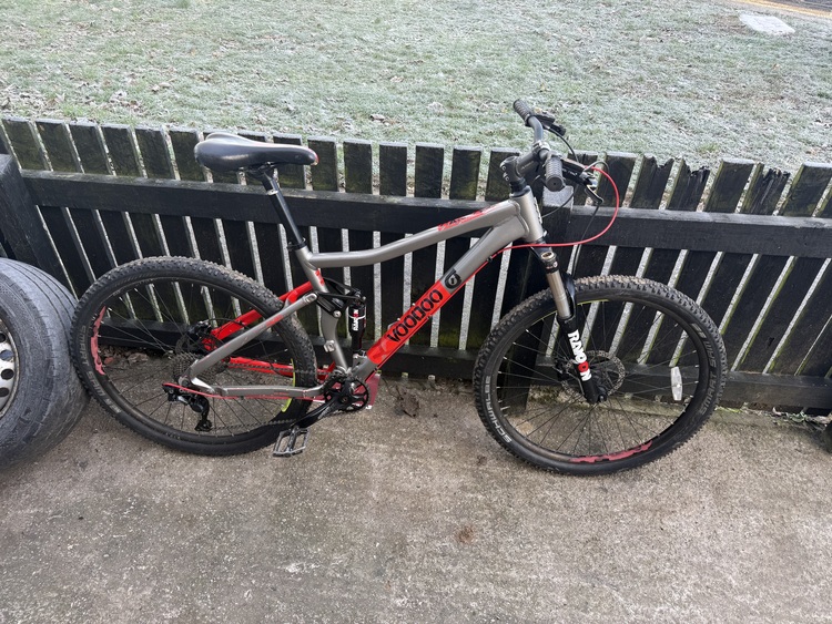 Voodoo Canzo mountain bike those looking for a reliable and stylish ride. With a 27.5inch wheel size and front suspension type, it's ideal for tackling tough trails. The bike features a riser bar handlebar type, disc brake - hydraulic brake type, and derailleur gears gear change mechanism. The red colour and unisex adults department make it a versatile choice for any rider. It also includes features such as lightweight design,and adjustable seat. The Voodoo canzo is a great choice for anyone looking for a high-quality mountain bike.Its used and still rides pretty good £300