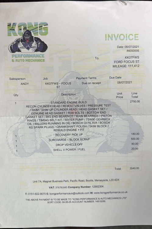 Top end rebuilt at 110k with invoice