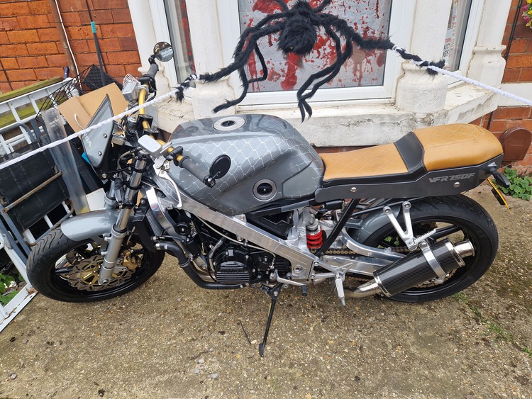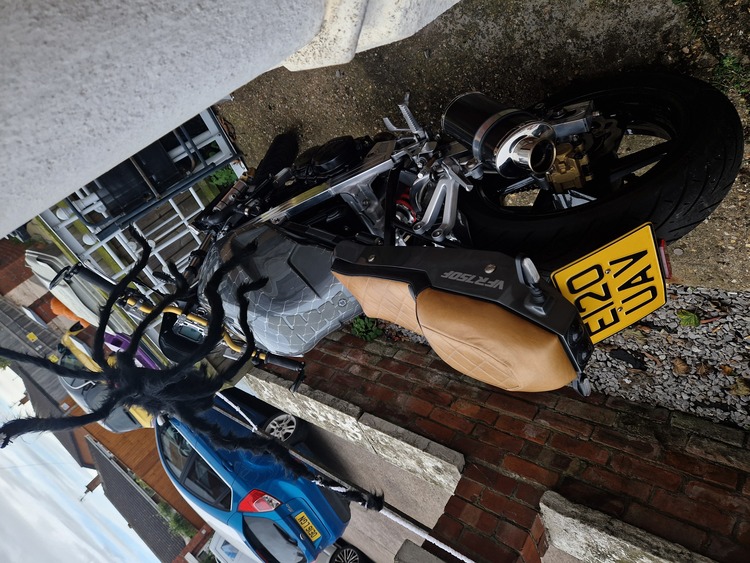Here i have my recent rebuilt and custom built . Motorbike . I have pictures of every stage of the build . Recent serviced . Taxed and moted and insuranced . The bike really is a stunning peace . Please dont offer me rubbish i know what this is worth its had a fortune spent to get it like it is now . Its a 750cc . It's also taxed and insured ready to ride