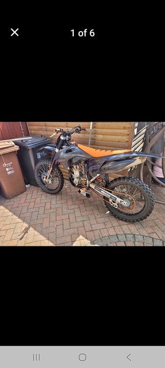 2006 ktm 250 sxf with 2012 black plastics fitterd comes with white and orange plastics aswell just had a star cross back tyre fitterd 4 rides ago starts 1st kick when cold but when warm only starts off a bump wants shimms and valves resetting but I can't get it in my local shop till January my bike and £300 cash