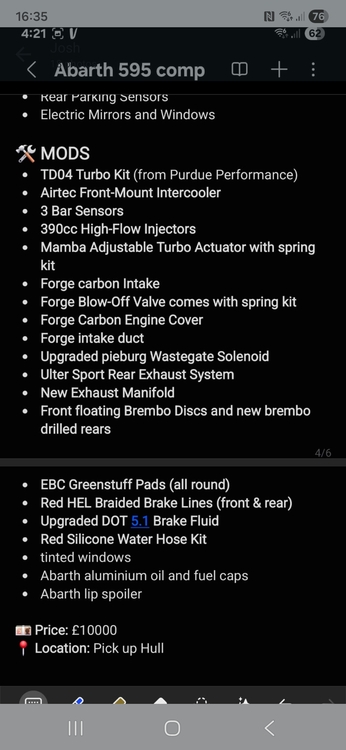 Abarth competizione 2019 tdo4 kit new only just fitted ..stage 3 ... last pictures has description. Offers over 12k