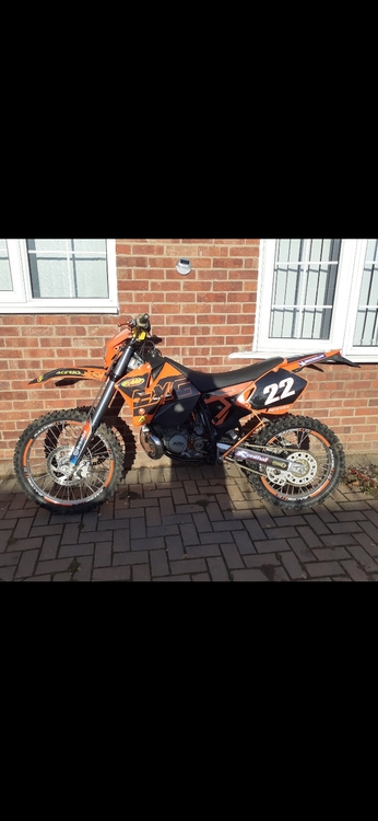 2001 ktm 200 exc Road legal full v5 very clean tidy bike it starts first kick every time not long since had a engine rebuild only used an hour or so since rebuild has new fmf exhaust boysen carbon reeds bran new plastics and graphics pics don't do it justice there's loads of spares very quick powerfully bike first to see and ride will swap thanks...