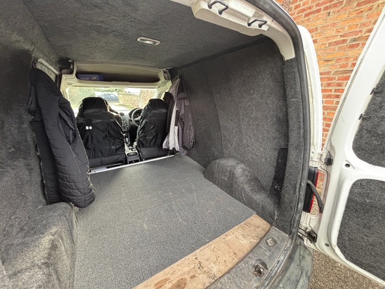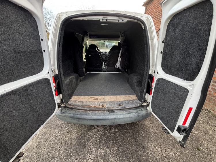 Vw caddy 1.6tdi 5 speed manual with 184,500 miles on the clock, mot until September 2026. Just had full service, timing belt and water pump, new front discs and pads and front drop links. It’s come off fleet so been well looked after and has a folder full of invoices for work carried out. Fully sound deadened and carpeted in the back, 17” alloys in black with new tyres all round. Overall it’s a tidy van for the year and drives well with some age related marks.