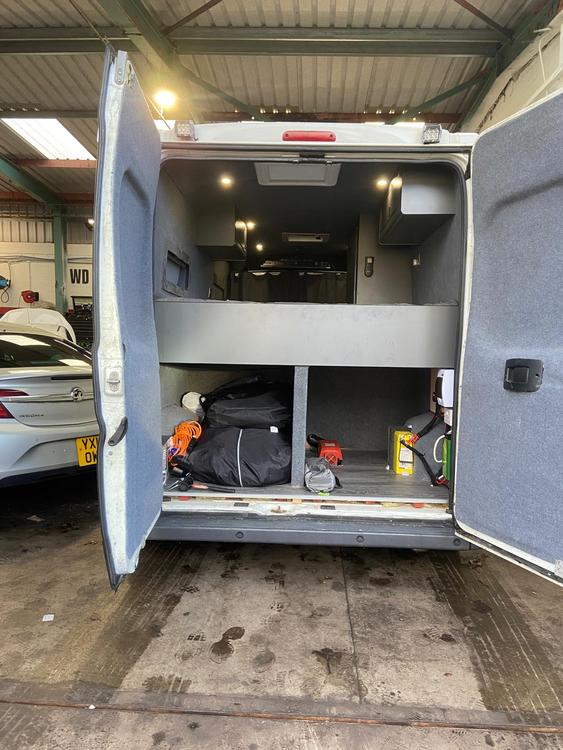 Citreon relay campervan. Converted to a high standard,12v ,240 hook up,remote maxi fan,x2 solar panels, fridge,2burner hob,sink,diesel heater,big fixed bed at rear ,plenty of storage,flip down smart telly,swivel chairs ready to go drive spot on