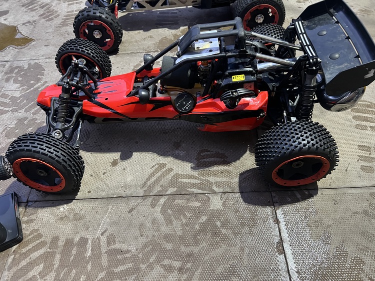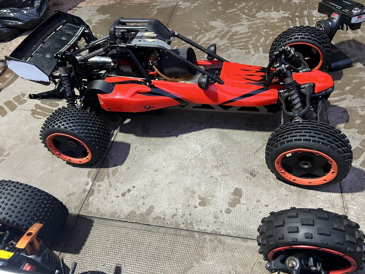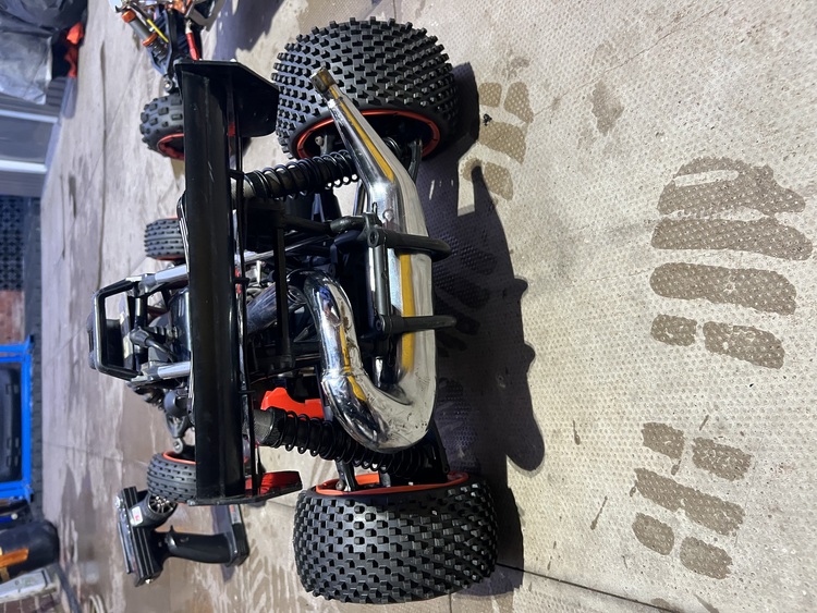 2x 2stroke petrol rc buggies 1/5 scale both running the one with the orange anodised bits on is a hpi baja 5b runs & drives but needs a new pull start it’s had a new clutch, brake shoe & battery also comes with the transmitter the red one with the shell on is a rovan baja 5b runs & drives but needs a battery & transmitter/receiver it’s had new tires & wheel bearings both clean cars and haven’t been used for a while just been shelf queens but now in the way any questions please ask