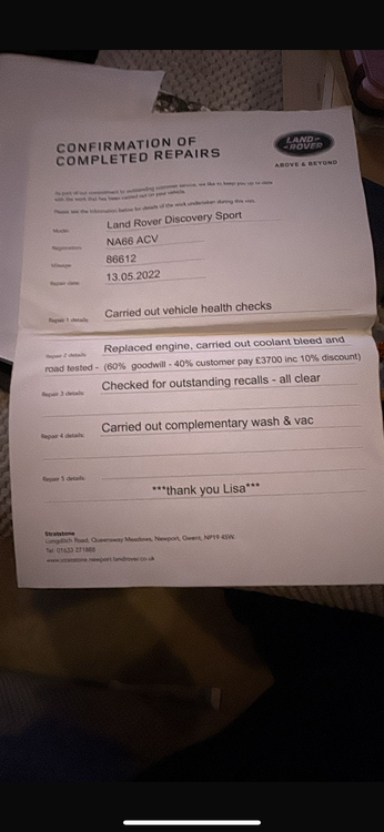 Was recalled 2022 had a bran new engine fitted by Landrover with full printout full service history manual top spec heated steering wheel seats also electric towbar full pan roof