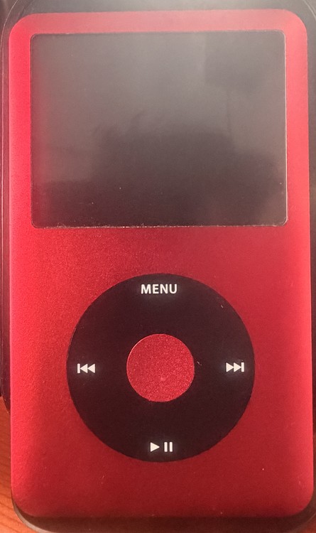 Ipod Classic 6th Gen Custom with Red front and Gold Back, storage is upgraded to flash storage with 512GB. The ipod has two taptic engines and a 4000mah battery that lasts 3 weeks.