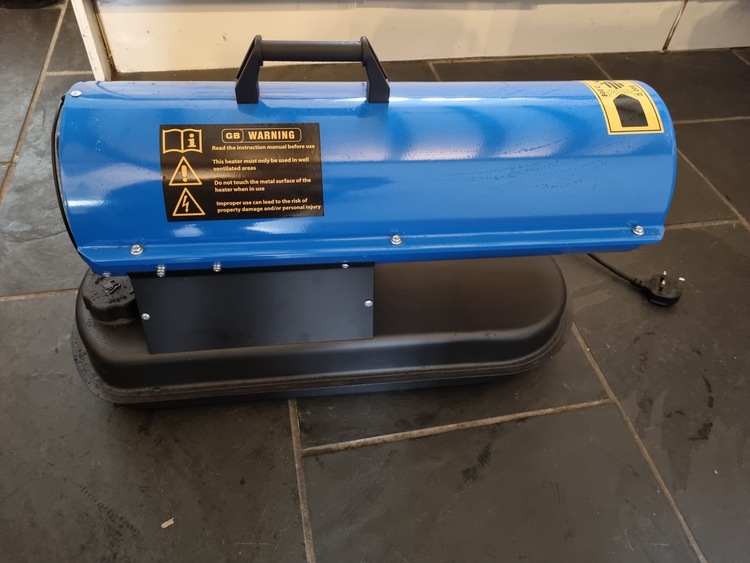 Brand new used for about 2mins and turned it off, i brought this to warm my home up fast but to powerful for my likings grate for units or garage or grate to warm up if working outside,I did have the box but got put in the recycling bin I have got proof of purchase brought for £150.