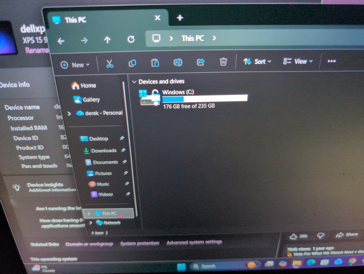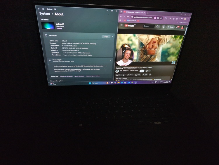 Dell laptop i7 processor 16 GB ram 256 GB SSD storage 4 k screen keyboard temperamental but comes with keyboard 2 dots on screen windows 11 runs perfect