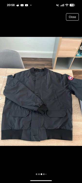 XL navy Canada goose bomber jacket verified by vinted cost around 450 vgc few bobbles on cuffs all zips perfect all buttons intact