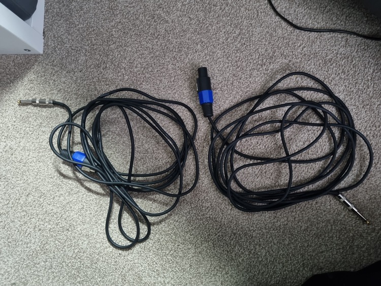 X2 macoy speakers i believe 300w and amp with x2 7m cables ,very loud,lots of bass good condition.
