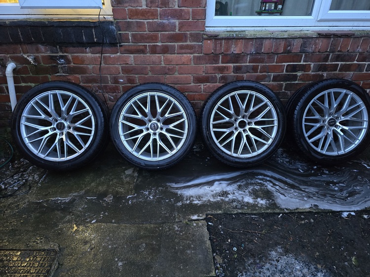 I have for sale my 20" 5x120 Inovit Blitz alloys. In good condition, few little scuffs but noting major as they do clean up well. 3 good tyres and 1 to be change soon. Had them fitted to my t5 transporter and will come with 3 spigot rings and 3 batman centre caps. Unfortunately the 4th had melted when a brake had seized on. £500 ono collection Durham