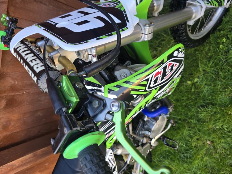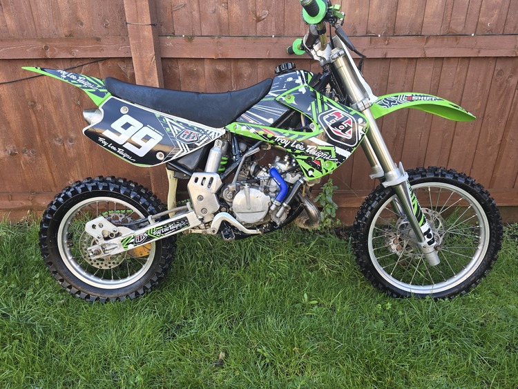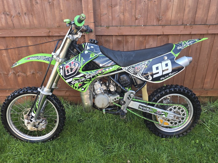 Kawasaki kx85 2004, this is my son's bike that he has now grown out of and decided to go down the mtb route instead. When we got this bike it came in boxes of bits. Its now been built up to exactly as you see it now. I have photos of before,during and after. Its only done 3 practice days since (Hence the reason forsale) the bike runs well and pulls strong. As the photo it has an fmf front and rear pipes fitted anodised levers. Plastics were new, as was all bearings, gaskets and seals new piston. Viewing will have to be pre arranged as the bike isnt kept at home open to sensible offers