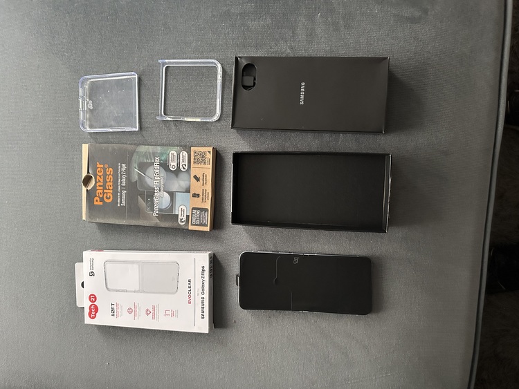 Here ive got my samsung z flip 6 256 gb unlocked blue as new only used 3times is fully boxed no marks or nothing unused charging cable plus panzer boxed as newplus a tech 21 case boxed all as new dont waste my time with crap offers genuine people thought ill try it but not for me as always been apple person only used about 3 times and put back in boxed ect
