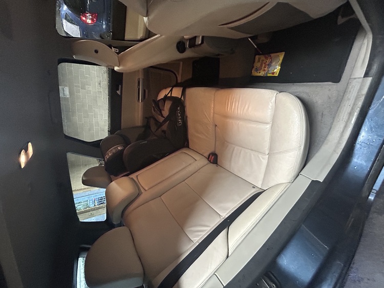 White leather seats built in rear booster seats which pop up. Heated front seats