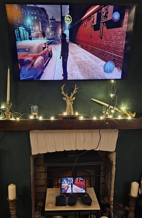 legion go great condition comes with controller grip can charge controllers while you play,4k docking station with hdmi and 3 USB slots can connect to ethernet for better connection, hdmi allows you to play on a big screen TV,connect mouse and keyboard also included is a 360gb external hard drive for expansion , white silicone cover and carry case ,comes with original box all in perfect working