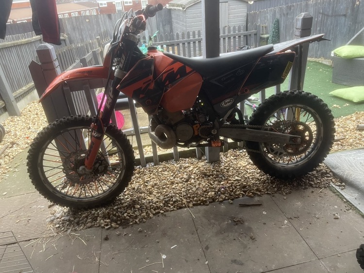 Here I have a ktm exc 200 I don’t know a lot about the bike as I haven’t owned it long. Selling due to having to move house and haven’t got a garage to store it in anymore.